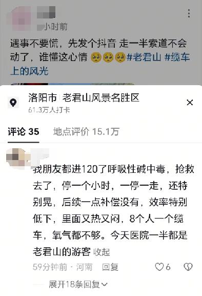 令人揪心的是,有网友称一家三口在缆车运行中突遭悬停,被挂在半空近20分钟。另有一位带孩子的游客反映,孩子被困高空害怕哭闹不止。