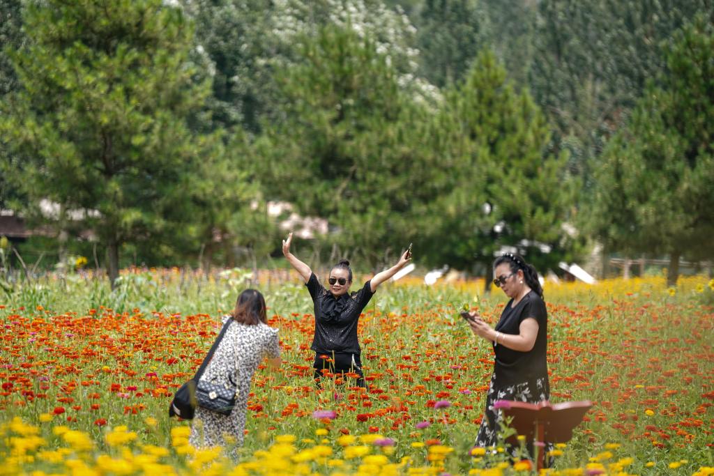 游客在南泥湾国家湿地公园内游玩(7月29日摄)。新华社记者樊雨晴摄