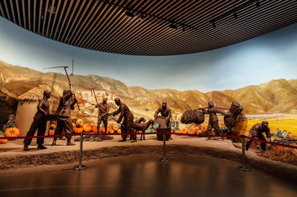 这是南泥湾大生产纪念馆内的雕塑作品(7月29日摄)。新华社记者樊雨晴摄