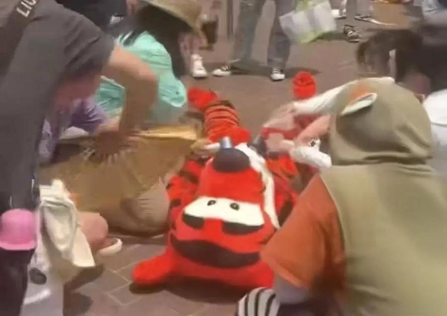 8月3日,有网友发帖称,当天12时许上海迪士尼乐园花车巡游过程中一名演职人员疑似中暑晕倒,从网友发布的视频显示,扮演“跳跳虎”的演职人员晕倒在地,身边几名游客上前帮忙,有的给其撑伞,有的蹲在旁边扇扇子,给其吹电风扇。随后有工作人员将“跳跳虎”演员扶起,送其就医。