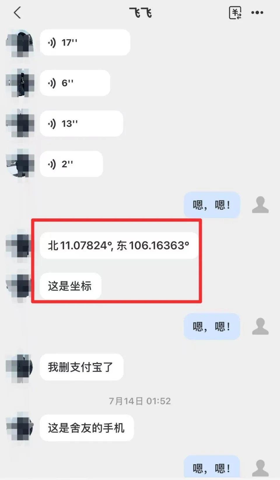 蔚先生介绍,从7月16日开始,再没收到过孩子的消息。父子俩此前网上交流信息显示,一开始小飞向父亲发送了位置截图和卫星坐标,但多次让父亲不要自己过去,因为过去人单势孤解决不了问题。