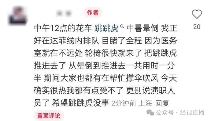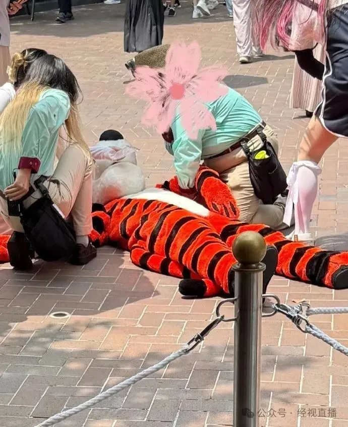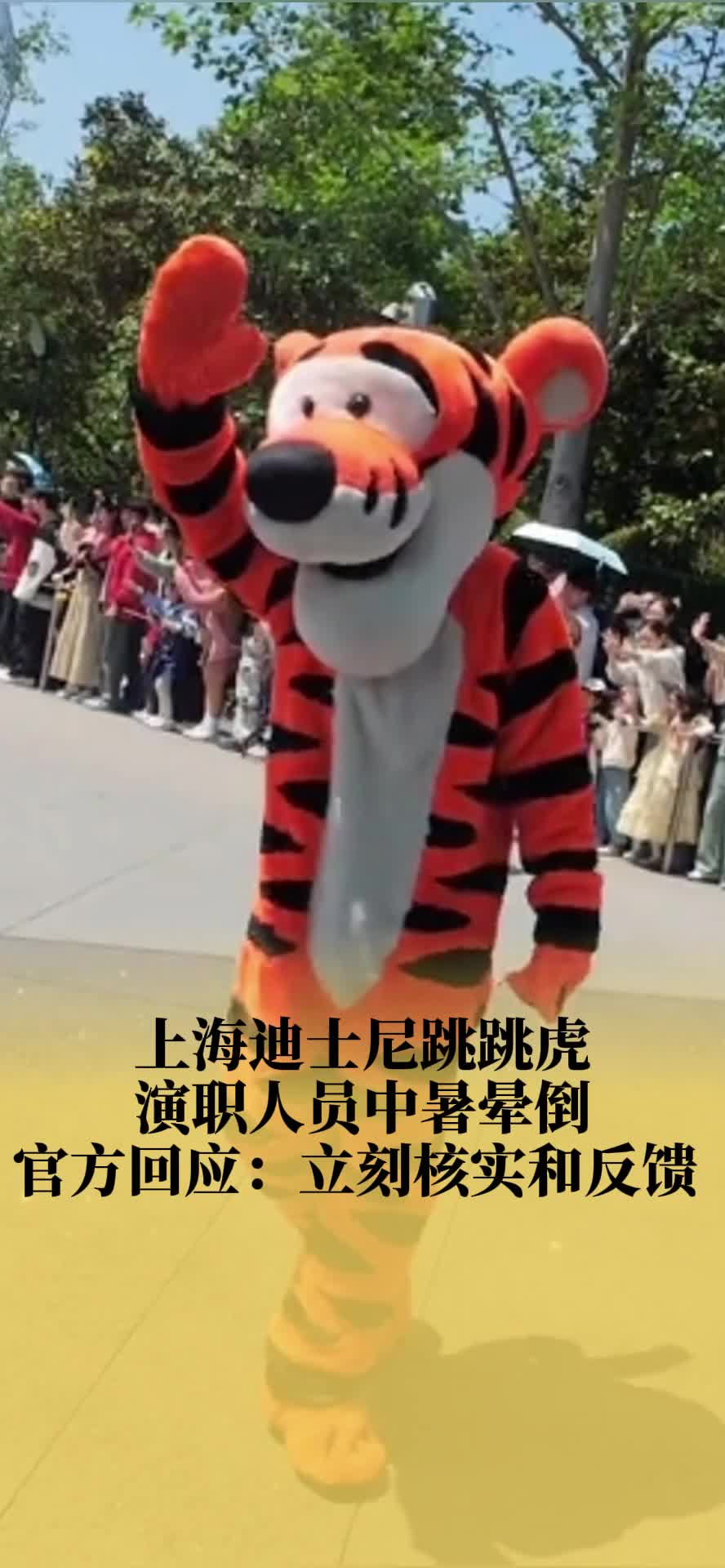 据三湘都市报消息:8月3日中午,在上海迪士尼乐园一场户外花车巡游中,身着跳跳虎人偶装的演职人员因高温天气中暑倒地。周围游客与工作人员迅速上前,很多人拿出自带小风扇给跳跳虎降温,还有的协助疏散寻求医疗支持。