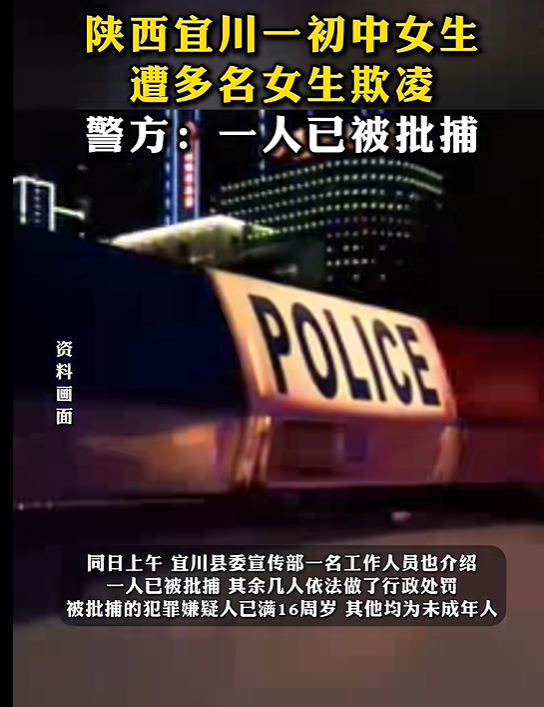 针对陕西省延安市“宜川一名初中女学生被多名女生拖拽殴打”一事,8月5日上午,宜川县公安局一名工作人员告诉记者,事发后,公安机关第一时间立案调查。目前,一名犯罪嫌疑人已被刑事拘留,并被批准逮捕,其余施暴人员也已被依法处罚。