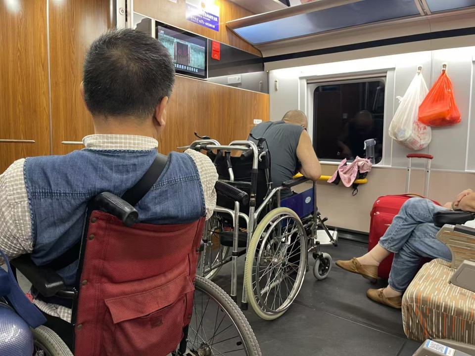 上车后,徐先生夫妇发现10号车厢并非无障碍车厢,且该车厢缺乏轮椅固定带和加宽通道,而给徐先生分配的座位还位于车厢中部,距离卫生间较远。列车工作人员了解情况后,将徐先生安置在12号车厢靠近无障碍卫生间的过道处。