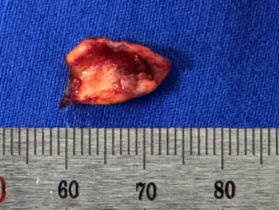 从小赵血管中剥离出的斑块,内有血栓附着。