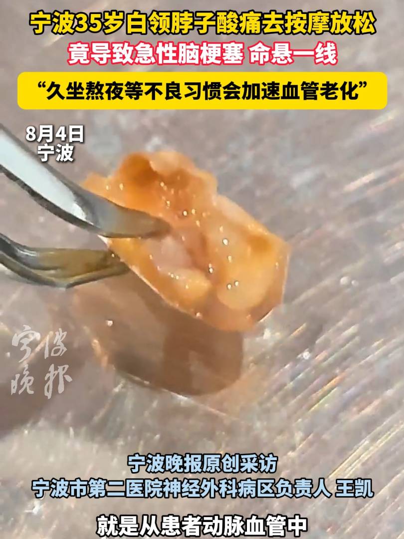 长时间对着电脑一动不动,低头玩手机一刷就是个把小时,很多人年纪轻轻,就有了肩颈问题。漫长疲惫的工作后,如果能安排一场“肩颈SPA”,那是相当惬意的事。然而,这看似放松的按摩背后,其实暗藏危机,近日,35岁的小赵在颈部按摩突发急性脑梗,险些丧命。