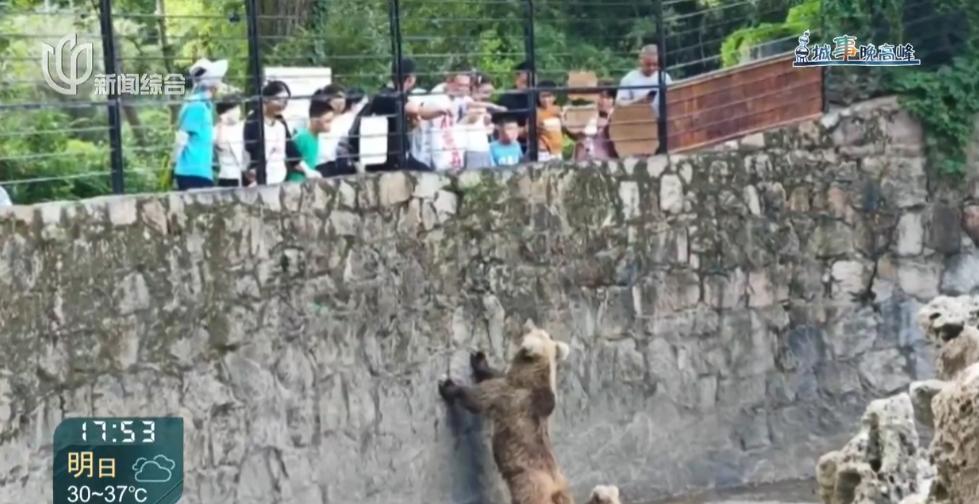 上海动物园熊山展区的投喂行为