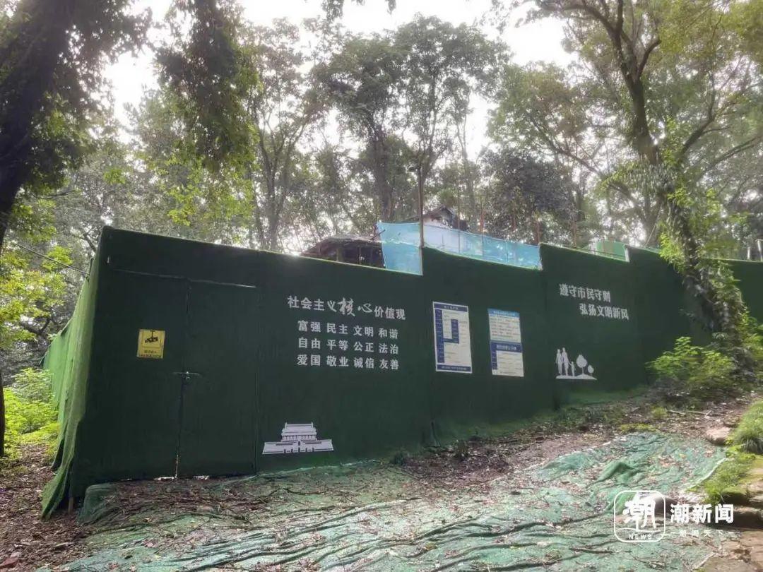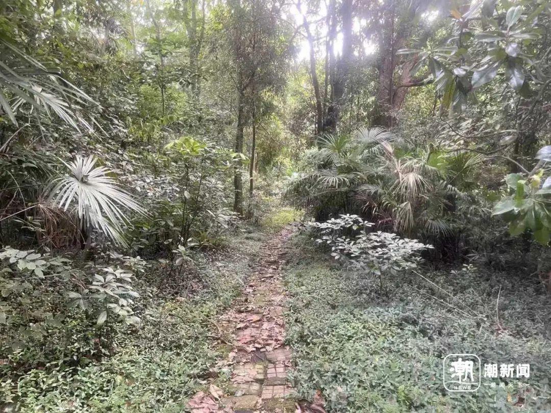更让记者没想到的是,站在玉泉路1号旁的石阶上向四周看去,只见浓密的树林,丝毫不见“邻居”身影。拾级而上,一路走到山顶,同样不见其影。如此折返几次后才恍然,这座建筑藏于山中,没有造好的路。直到记者在玉泉路1号建筑后方,穿过一条密林间的羊肠小径,才终于窥见这处神秘的玉泉路2号。