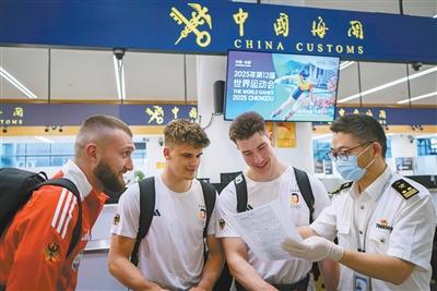 “世运会期间正值暑运高峰,成都天府国际机场出入境人数较平常增加了1.5倍,我们优化了智能检查通道,保障旅客快捷通关;还开设了世运会专用窗口,为涉赛人员提供通关、咨询等‘一站式’服务。”成都海关相关负责人薛珂说。据了解,8月3日至18日是成都世运会官方抵离服务期,预计将有超过5000名涉赛人员从成都天府国际机场等口岸通关。