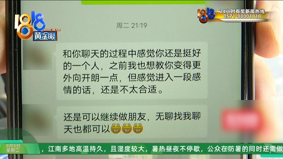 杭州禧爱信息技术有限公司红娘 朱先生:就是因为聊了很久,线下又见了,他性格还是这样的,无法去改变。女生觉得,我这样跟你在一起的话,特别地累啊。