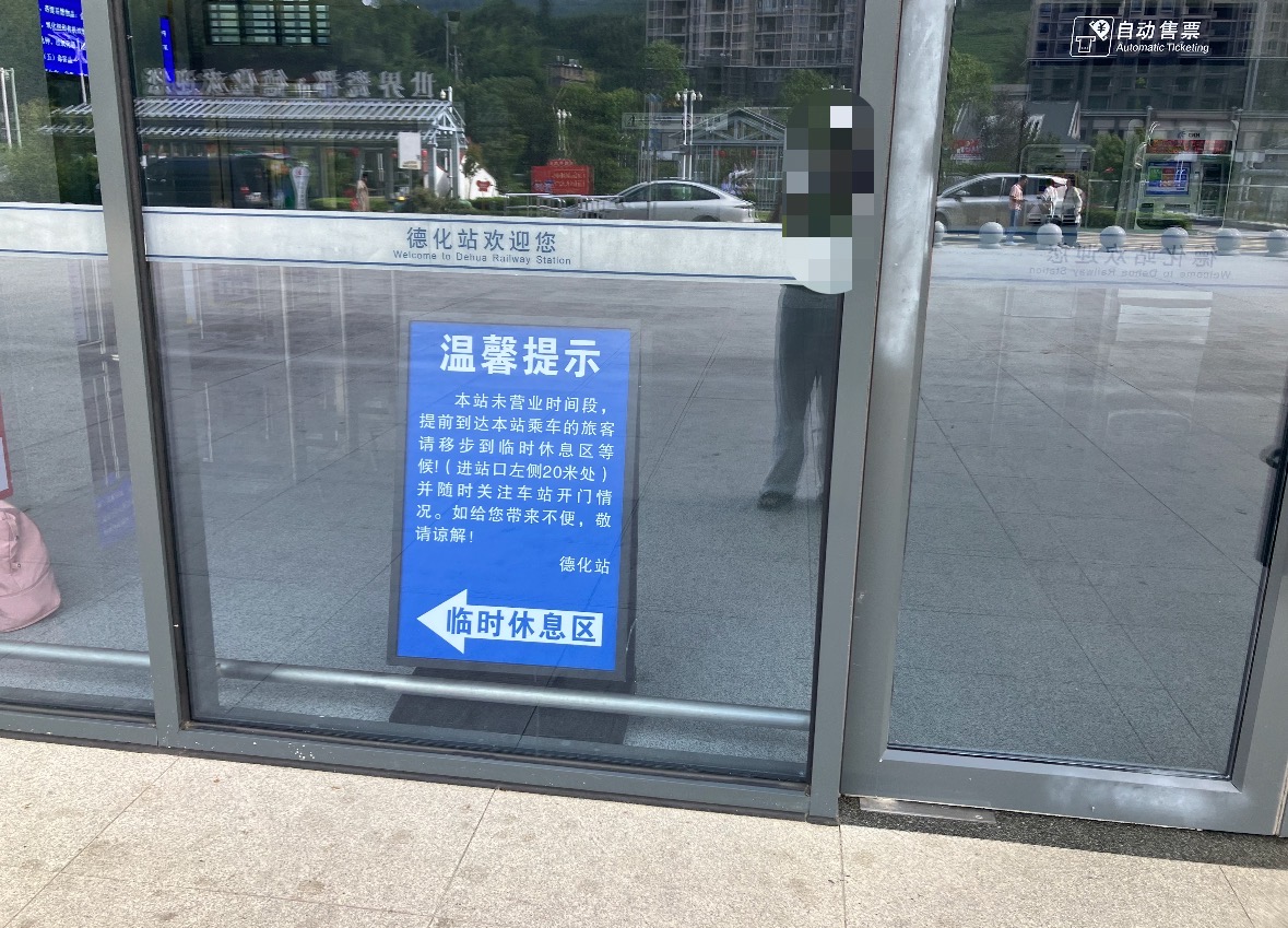 根据网友帖子中的图片,可以看到在德化站入口有一告示,写着“营业时间8:50-12:40,16:20-20:10。”同时还有一温馨提示写着“本站未营业时间段,提前到达本站乘车的旅客请移步到临时休息区等候!”