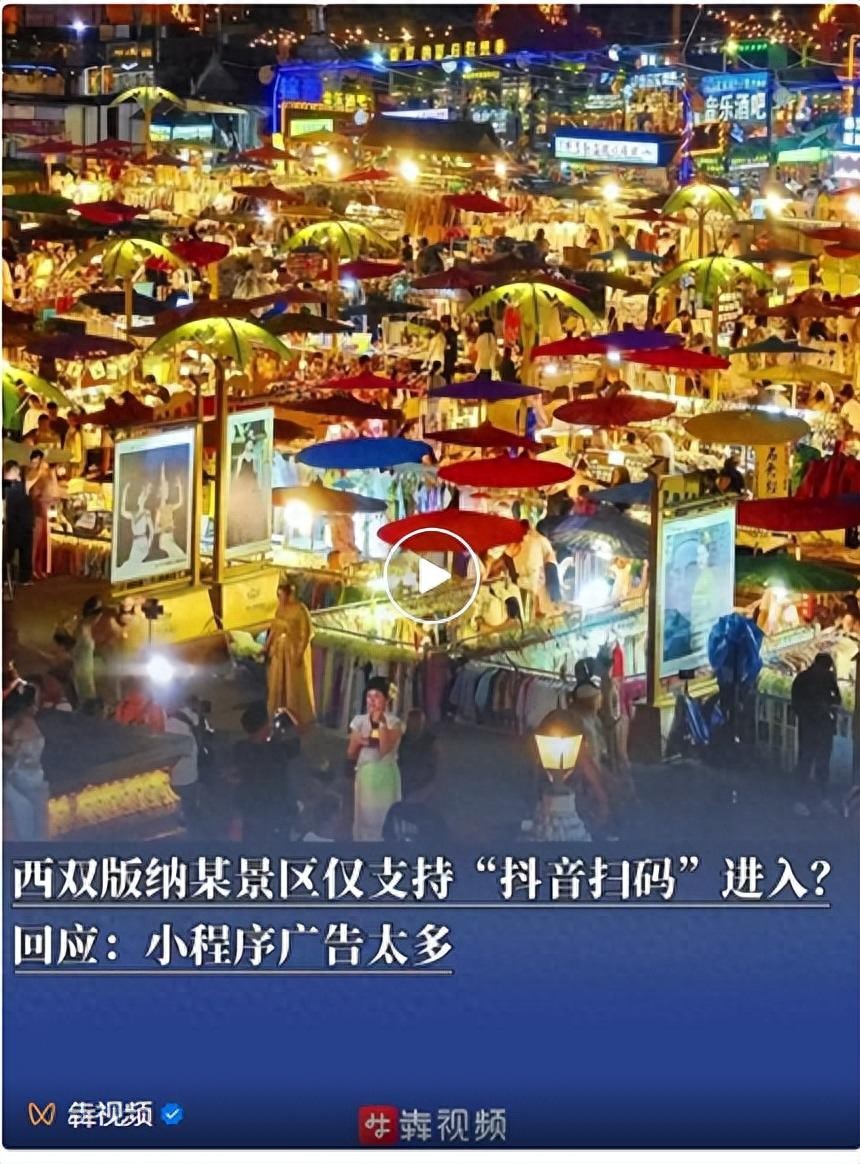 8月7日消息,据多家媒体综合报道,近日,西双版纳星光夜市因“强制要求游客下载抖音扫码入园”事件引发舆论热议。