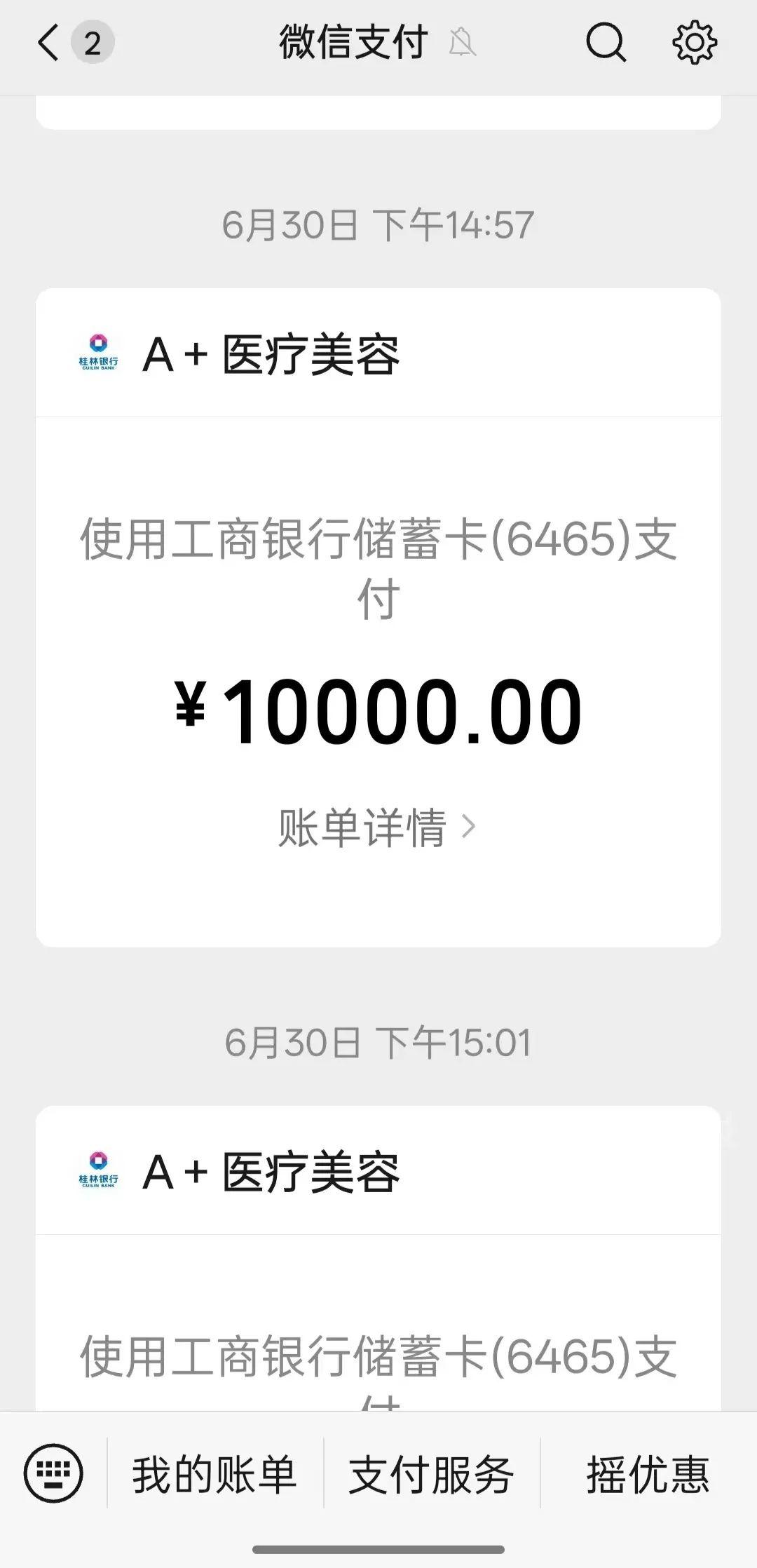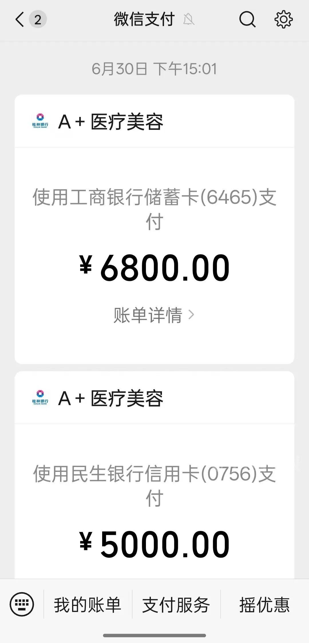 柳州市民吴女士在柳州一美容院洗脸时,听说做医美项目“面部提升”可以年轻20岁,就跟着柳州一美容院老板去南宁。在花费了3.68万元之后,吴女士觉得川字纹还在,眼袋也没有效果,跟之前没什么区别。吴女士觉得自己被坑了,拨打今报热线反映此事。