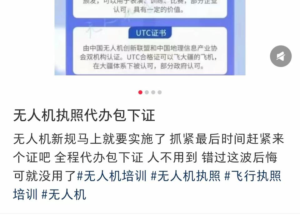 一位业内人士表示,所谓“包拿证”只是消费噱头。无人机驾驶证通过率并不低,只是有人考试速度快,有人则可能需要考两三次。若学员考不过,机构就以学习不够为由推脱责任。