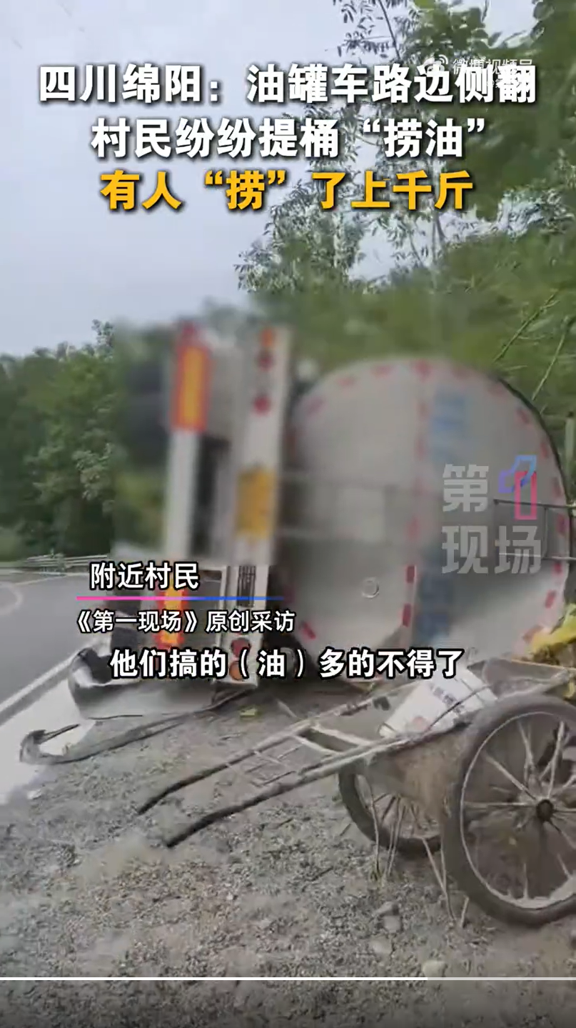 “有人捞了1000多斤!” 四川一油罐车侧翻村民提桶狂捞油