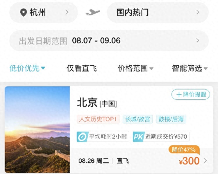 “感觉今年暑假的机票比往年便宜,今年临近出发日期,反而比我提前订的往返机票便宜了300多元。”进入8月,不少小伙伴发现,最近浙江多地出发的国内机票出现好价,部分热门目的地300元起就可飞。