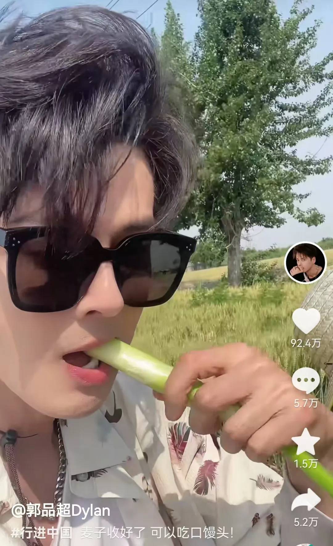 今年6月,郭品超在社交平台分享在山东老家的生活,骑“三蹦子”、赶大集、吃大葱……从偶像剧男主到接地气山东大汉,颠覆了荧幕形象。