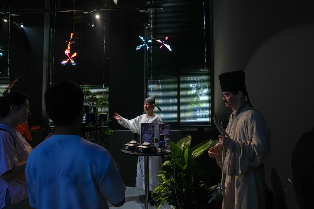 人形仿生机器人“苏轼”“李白”上演脱口秀。新华社记者 鞠焕宗 摄