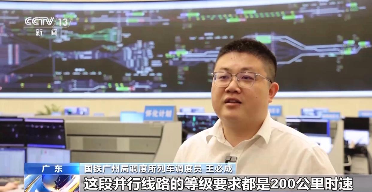 国铁广州局调度所列车调度员 王必成:两趟列车都是刚出站,这段并行线路的等级要求都是200公里时速,而且我们调度员也会根据不同的线路情况发布不同指令,所以看起来像你追我赶的样子。