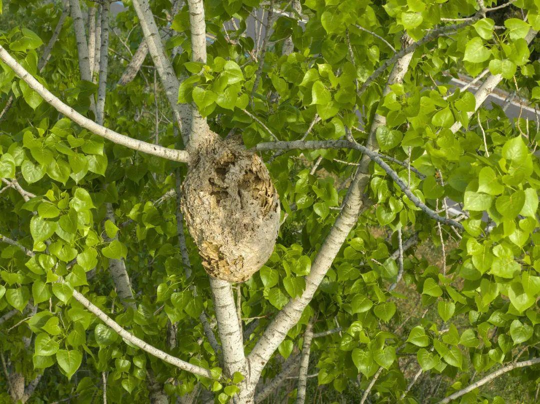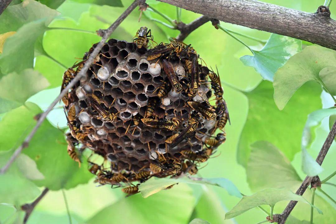 在此提醒,野外的马蜂攻击性极强,一旦蜂巢受到惊扰,就会倾巢而出,对周围的人和动物进行攻击。山区游玩时,要特别注意观察周围环境,远离可能有蜂巢的树木或岩壁。