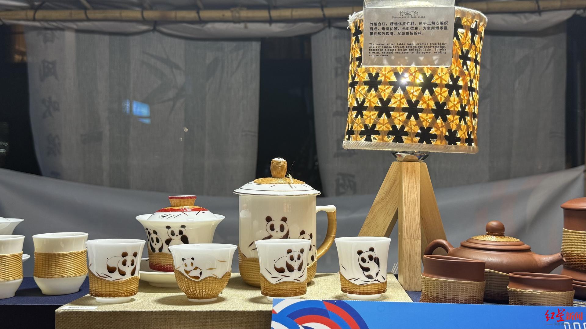 在刘罗琳团队的竹编摊位上,摆满了各式各样精巧的竹编作品。“熊猫抱竹”竹编盖碗,将国宝熊猫与竹子这两个极具中国特色的元素巧妙结合,竹子的清香与熊猫的憨态可掬相得益彰;竹编台灯散发着柔和的光芒,独特的编织工艺让光线透过竹编灯罩,营造出温馨而富有诗意的氛围;竹编耳环、竹编胸花等饰品,设计新颖,兼具时尚与传统韵味,成为不少女运动员的心头好……