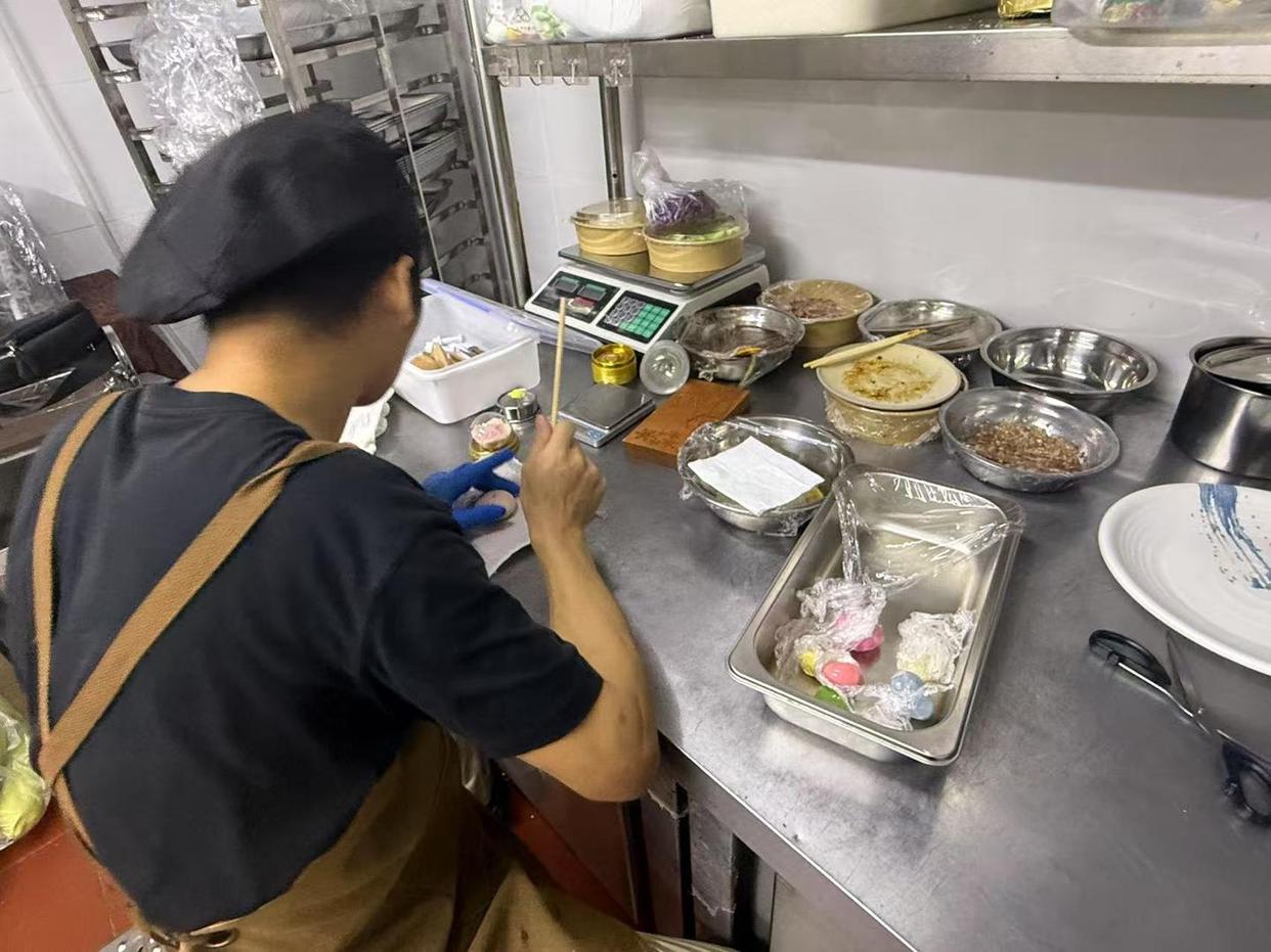 据介绍,黄师傅今年40岁,从事餐饮行业已有二十多年,“我在抖音上刷到了这家店的招聘信息,觉得老板还是有社会责任的。”丰富的工作经验让他养成了“沉得住气”的性格,从早上10点到下午6点,黄师傅总是呆在工作间里,专注于手头的工作,“餐饮行业一周无休都是有可能的情况,而这份工作能有双休,我还能把更多时间和精力留给自己。”