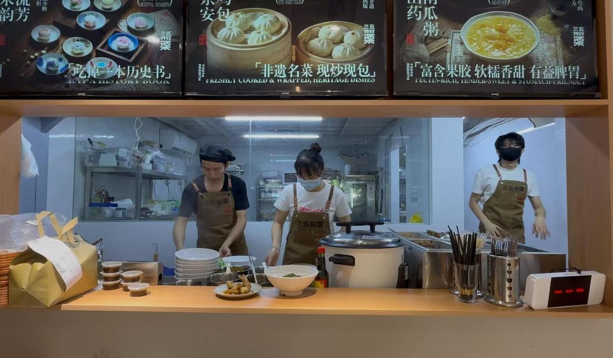 老板易北(化名)告诉记者,门店从早上7点经营至晚上10点,每到中午是门店最忙的时候,附近会有很多上班族来用餐,“门店刚开业不久,我之前没有做餐饮的经验,一开始也经历了不少摸索的过程,目前一天大概能有200单业务。”