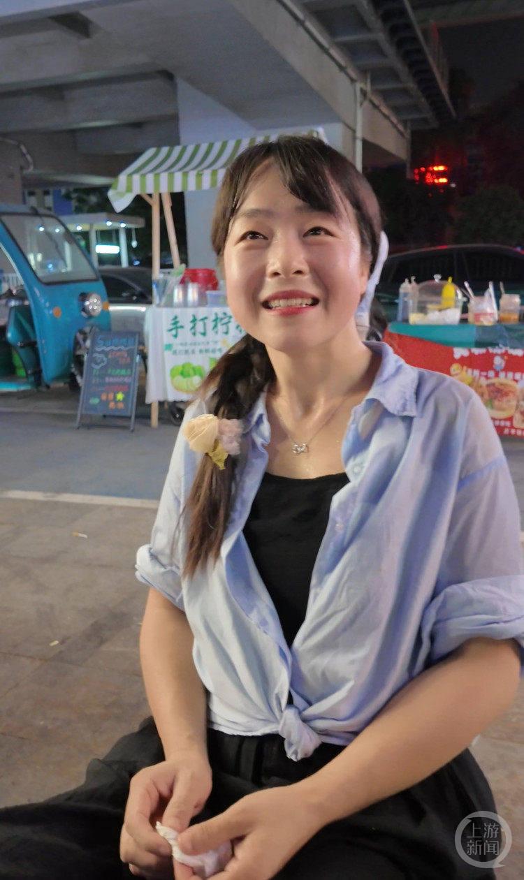 卖凉面的大哥送来了一杯凉虾,卖柠檬茶的00后小伙送来了几块西瓜,身后的卤菜摊主捧来一个小风扇,对着记者吹……