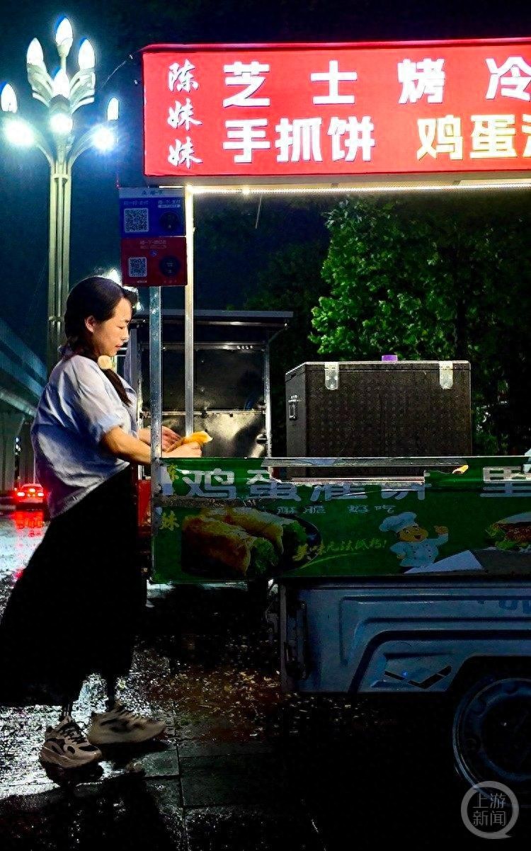 “要点什么?有烤冷面、手抓饼……”8月7日晚,在重庆华岩中心轨道站下方的夜市里,陈玲站在摊位后询问顾客道。