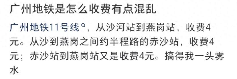 网友表示“十一号线从沙河站到燕岗站,收费4元;从沙河到沙河与燕岗之间约半程路的赤沙站,同样收费4元;而从赤沙站到燕岗站也是收费4元。搞得一头雾水了。”