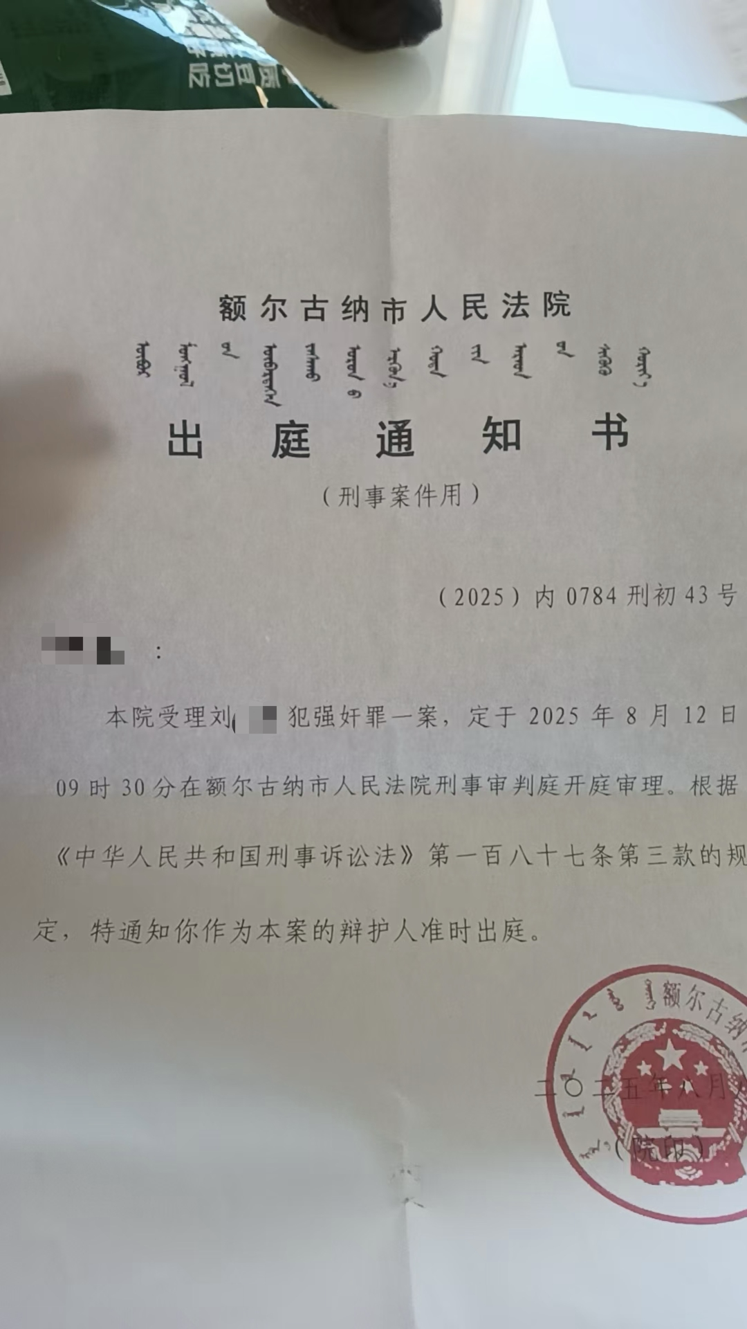 此前,内蒙古额尔古纳市“男子殴打妻子后发生性关系被告强奸”一事引发热议。8月10日,潇湘晨报记者联系上了当事人刘军(化名)的姐姐,她告诉记者,该案将在8月12日额尔古纳市人民法院开庭审理。刘女士称,她已向法院提交了作为刘军的辩护人申请,届时,她将出庭为弟弟辩护。