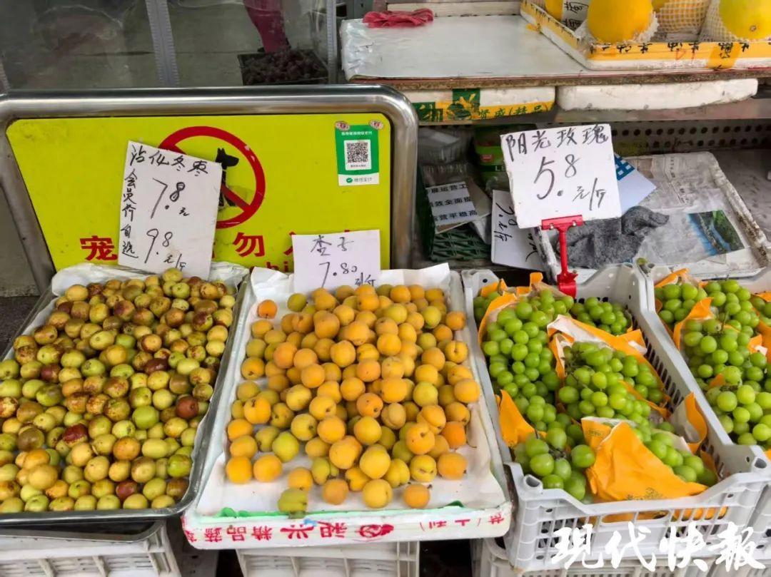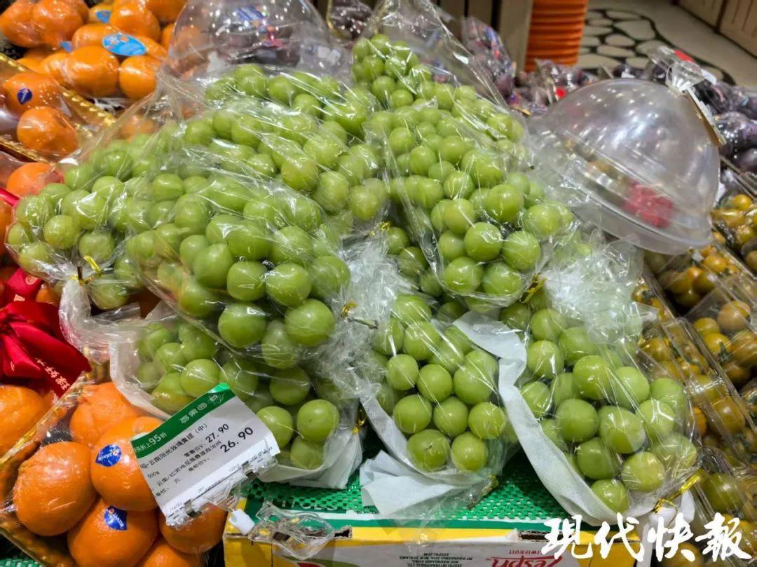 以阳光玫瑰葡萄为例,附近不同水果店的价格差异明显。在百果园店内,产地为云南红河哈尼族彝族自治州的阳光玫瑰零售价27.9元一斤,“果粉价”是26.9元一斤。在新街口附近一条街上的另外三家水果摊上,一家的“精品晴王”13.8元一斤,一家的“晴王”9.5元一斤,还有一家的“阳光玫瑰”5.8元一斤。