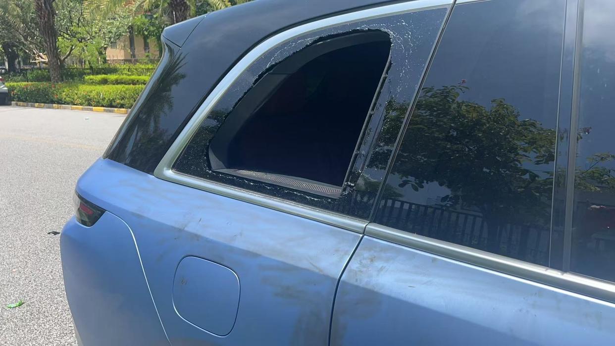 “车子被砸的地方就在北海红树林景区附近。”一名被砸车主称,他是从外地自驾到北海旅游的,8月10日晚上将车停在那条公路边,天亮后准备驾车离开,没想到车子被砸了,幸好车内没有放贵重物品,但里面全被翻乱了,其他有些被砸车子里面的物品遭洗劫。