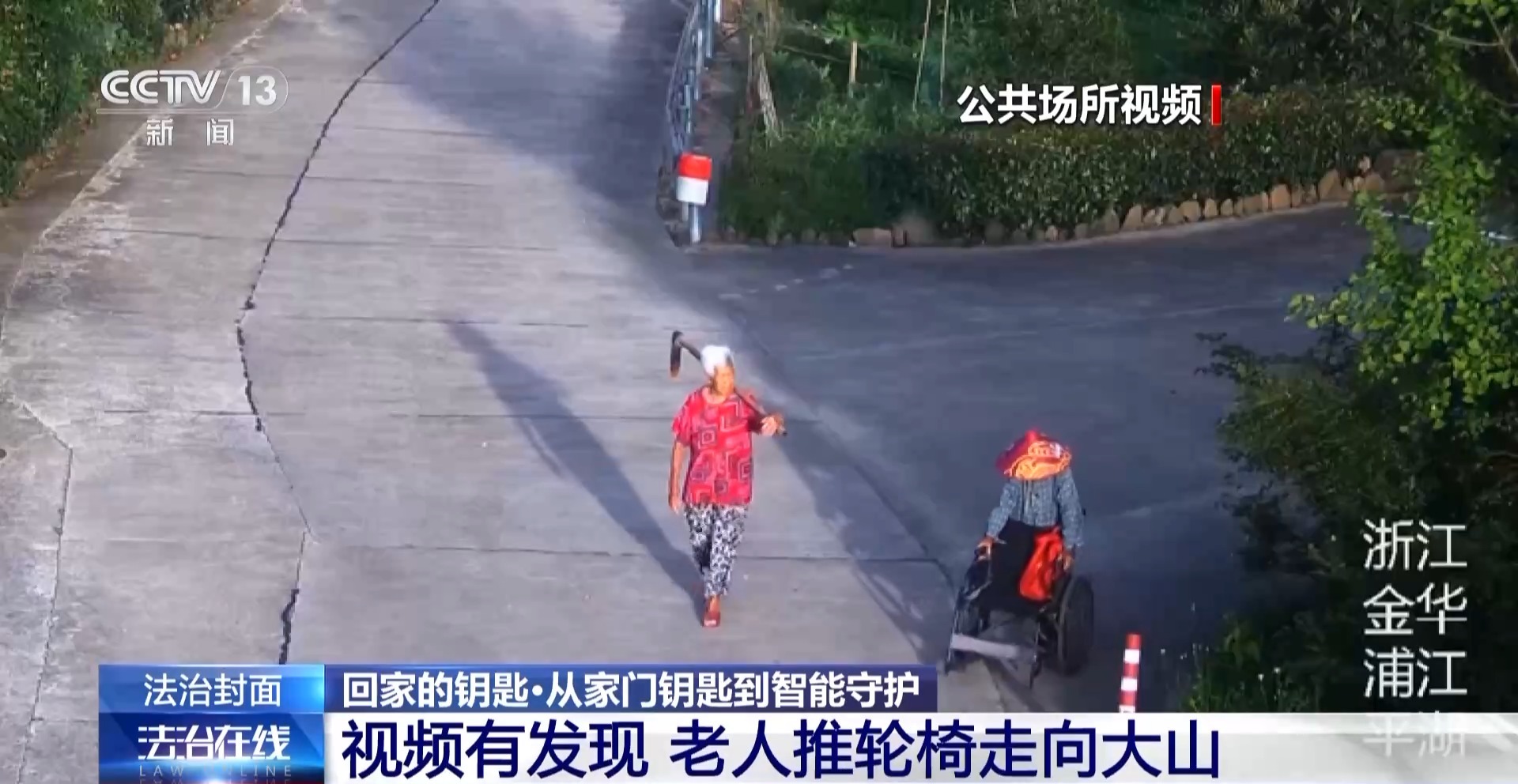 这是村口的公共场所视频,7月2日早上6时多,老人出现在了画面中,她头戴斗笠,推着轮椅往几百米外的香榧山的方向去了,而这也是周围唯一拍到她的画面。在查看视频的同时,另一路民警已经来到了香榧山山脚下寻找线索。