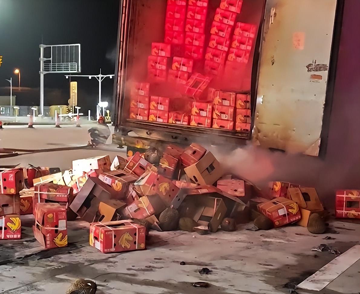 8月4日凌晨3时58分,柳州市消防救援支队指挥中心接到报警,在鱼峰区东外环快速路官塘收费站出口处,一辆满载榴莲的货车行驶途中起火。