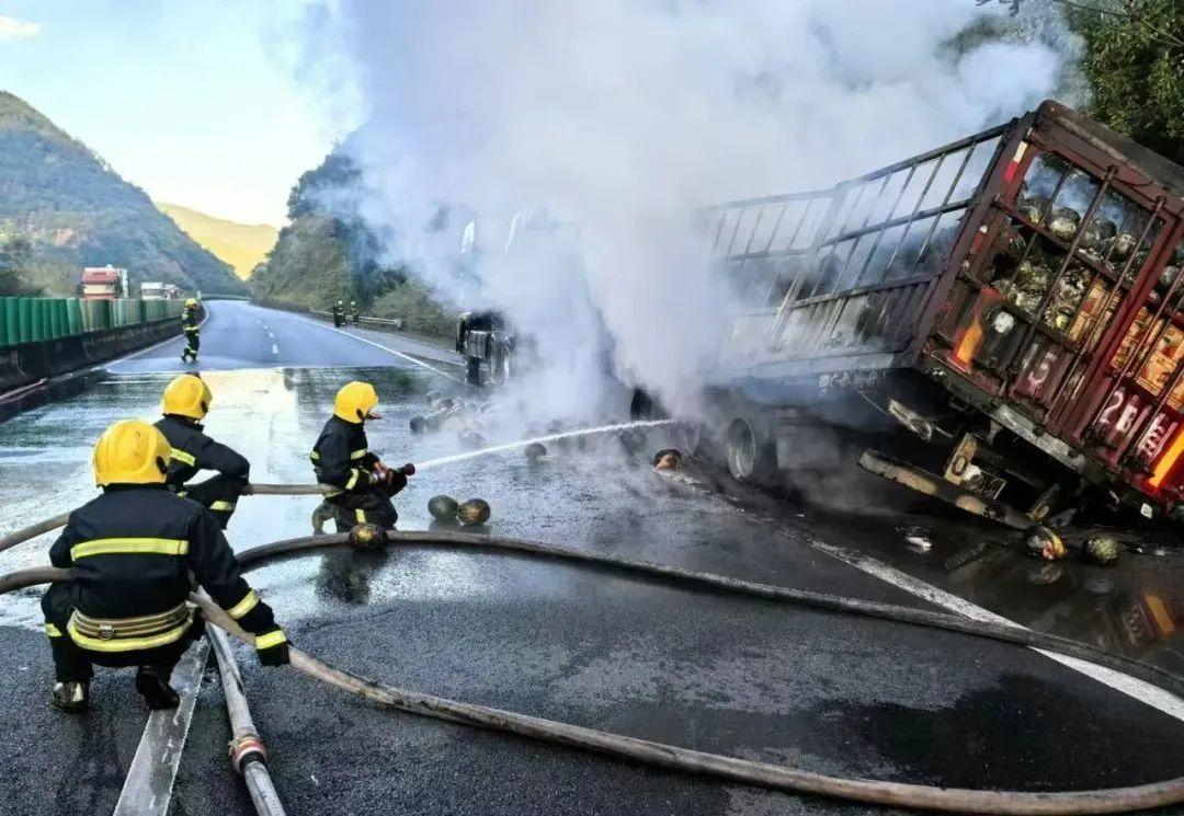 2024年11月,杭瑞高速保山至大理方向,一辆载有32吨西瓜的大货车起火。经过消防员紧张扑救,明火被扑灭。据悉,该起事故造成财产损失约18万元。