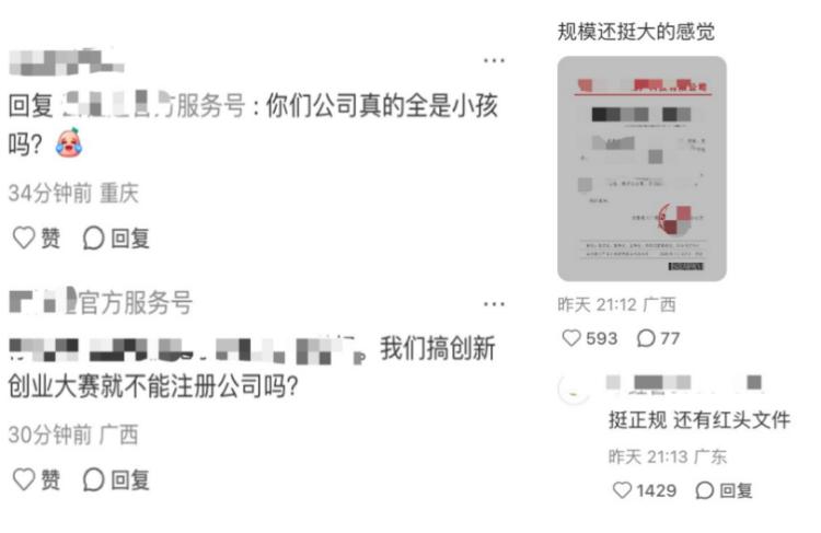 未成年人当企业董事长的帖子引发不少网友讨论。在帖子评论区,有人表示好奇:“公司董事长这么年轻,不知道能不能胜任管理工作。”也有人质疑其任职资格:“未成年人不能独立承担完全民事责任,是否符合公司法规定值得关注。”还有网友惊讶于公司架构:“还有股东会和分公司,看着规模不小。”