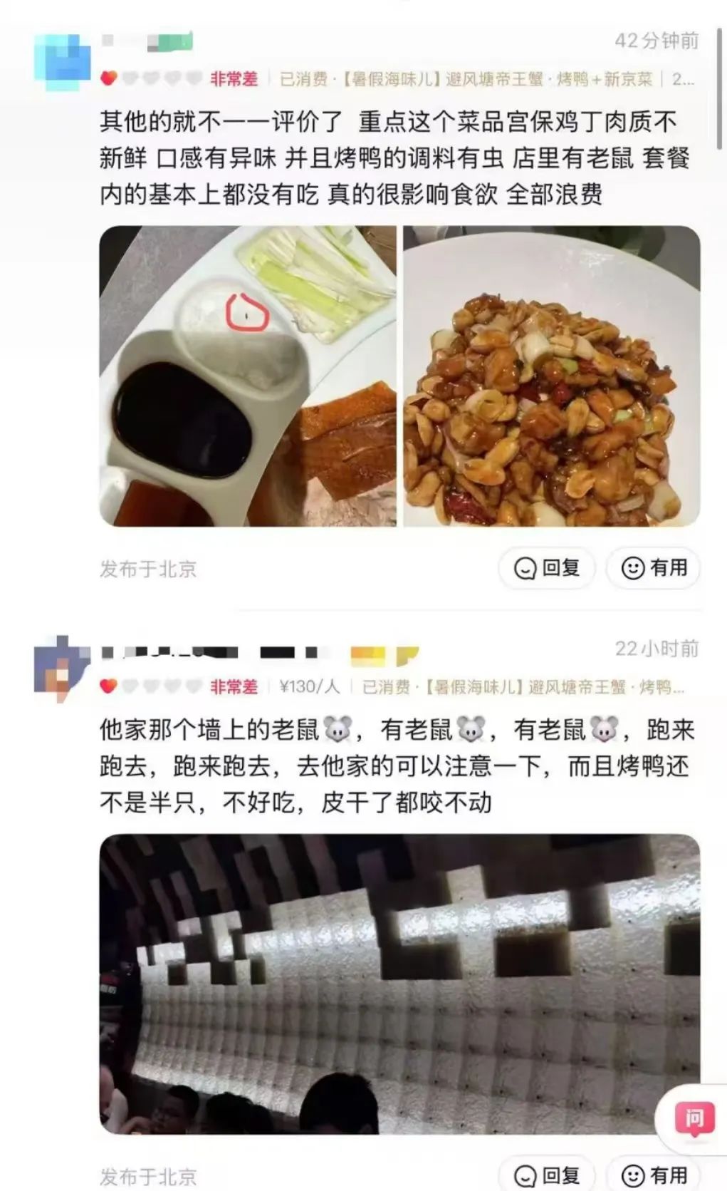 《正在新闻》发现餐厅点评页面,有两位顾客留言反映店内发现有老鼠的情况。