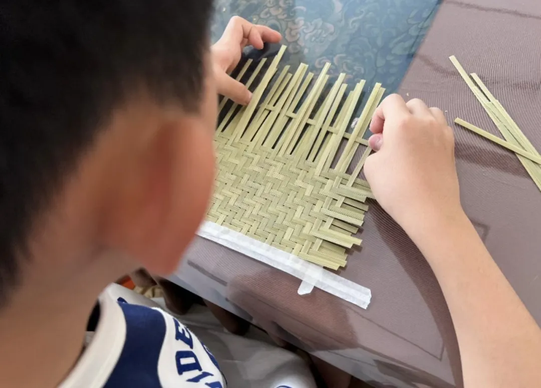 徐女士的儿子在博物馆动手做竹编