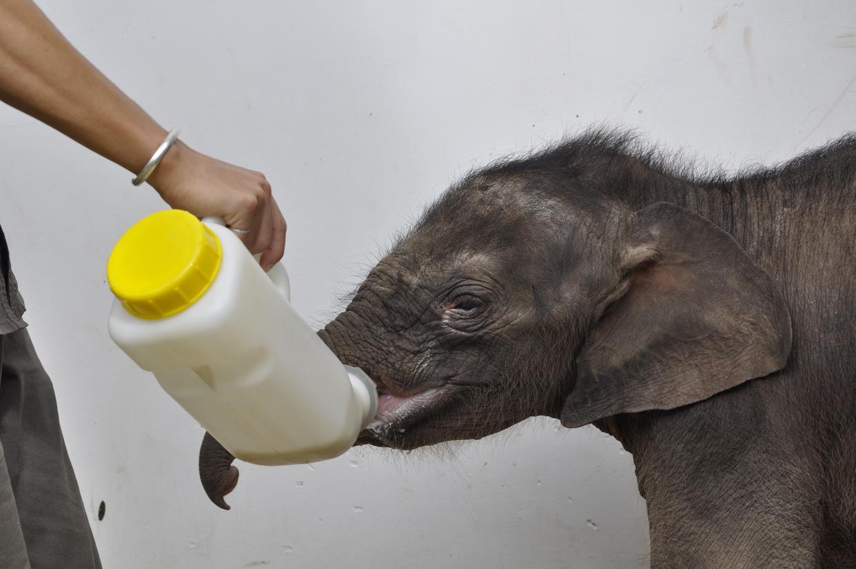 “羊妞”被救助时仅出生7天,是西双版纳亚洲象救护与繁育中心投入使用以来,第一次尝试救助这么小的幼象。当时“羊妞”出现腹泻、心律不齐等症状,甚至在转运到中心的途中,还出现了休克的情况。“羊妞”的第一任“象爸爸”陈继铭说,在现场的工作人员都觉得情况不乐观,但大家都不愿说破,全身心为“羊妞”努力着。