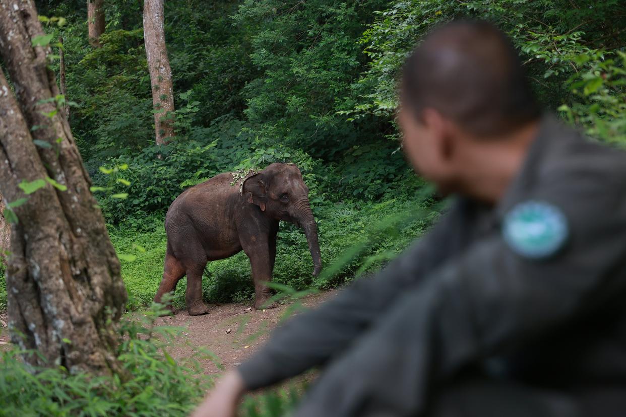 看着“羊妞”幼年时的照片,再看看如今已经190厘米的它,陈继铭很感慨,但“羊妞”的变化不仅仅是身高、体重。因为长期喝羊奶,它身上的味道有些不同,遭到了其他大象的排斥,“象爸爸”想让有野外生存经验的成年大象带它学习生存技能的想法落空了。不过,通过日复一日的野放,“羊妞”也慢慢学会了一些野外生存技能,目前已经可以采食20多种植物啦!