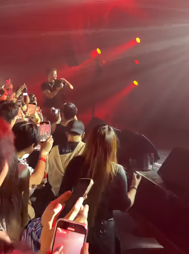 8月9日晚,杭州拱墅区一家LiveHouse(音乐展演空间)内,各色灯光交错闪烁,底下的观众跟着强劲的节拍摆动手臂。演出大约过半,音乐声戛然而止,台上的说唱歌手APMOZART(陈麒竹)将手里的话筒递给台下的一名女观众,她对着话筒大声说,有一个灰衣服、微胖的油头男朝她腿部喷射了不明液体。