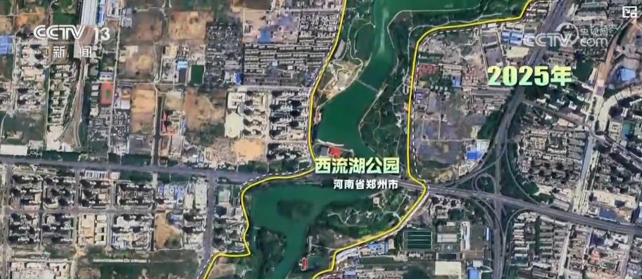 这是河南郑州西流湖公园,贾鲁河故道滩涂上3.2平方公里新增植被已绿树成荫。