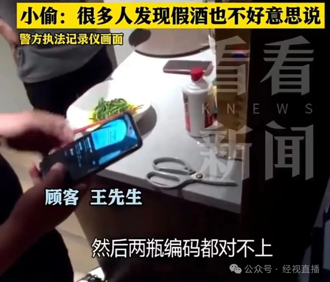 王先生为了商务宴请买了两瓶茅台酒直接带到了餐厅交给服务员,尝出口感不对才发现酒被调包了。事实上,买完这两瓶酒,王先生就拍下了酒瓶上的防伪码。包房里剩下的两瓶虽说也是2025年版本的名酒,但它们不仅和王先生带来的酒的编码不同,而且并非真酒。