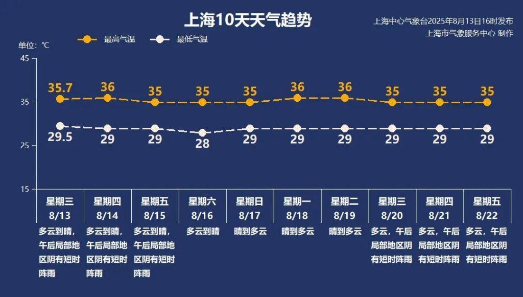 8月中旬,上海的高温或将全勤。