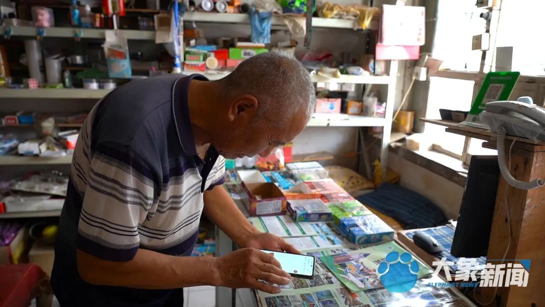 剪辑视频对一位60多岁的老人来说并不容易,他常常在超市的角落里,猫着腰,戴着老花镜,边剪辑视频,边在旁边的本上记着一些东西。