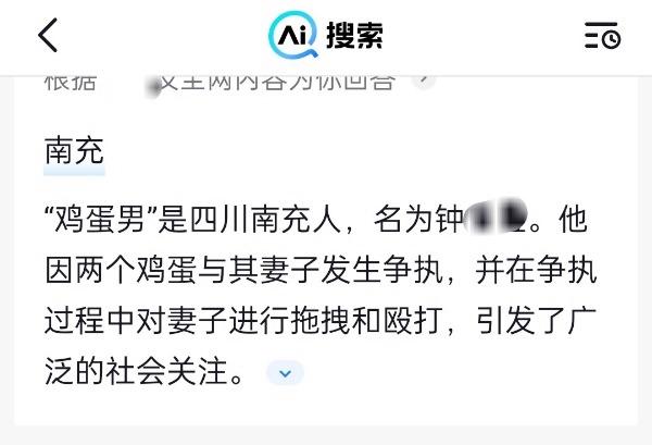 短视频平台AI搜索结果提到,当事男子为四川南充人