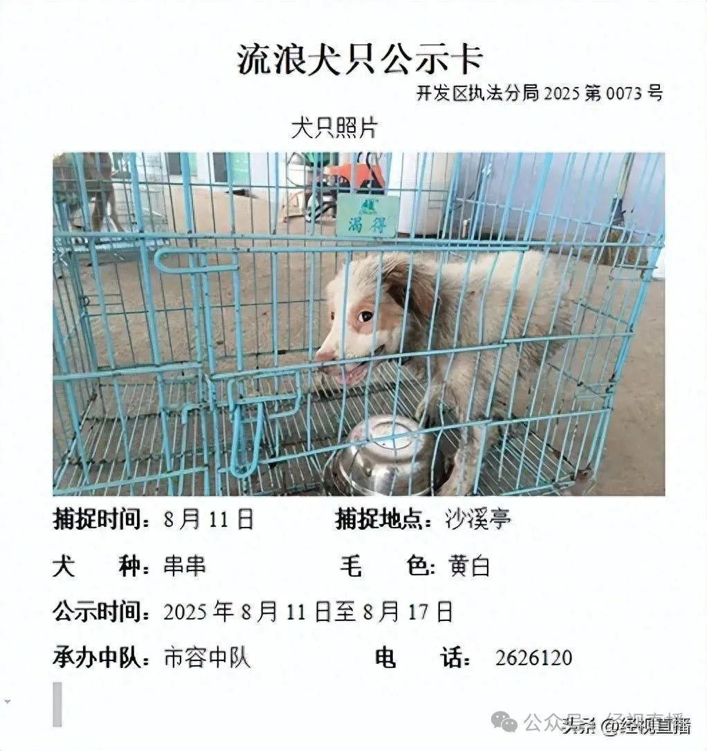 近日,浙江省丽水经开区流浪狗收容中心公众号发布的流浪犬捕捉情况公示引发关注。该公示由丽水市综合行政执法局开发区分局发布,公开了多只被捕捉流浪犬的照片、捕捉时间、地点、犬种、毛色等信息,公示期至8月17日,期内原犬主可认领。不少网友关心:公示期后无人认领的流浪犬将如何处置?