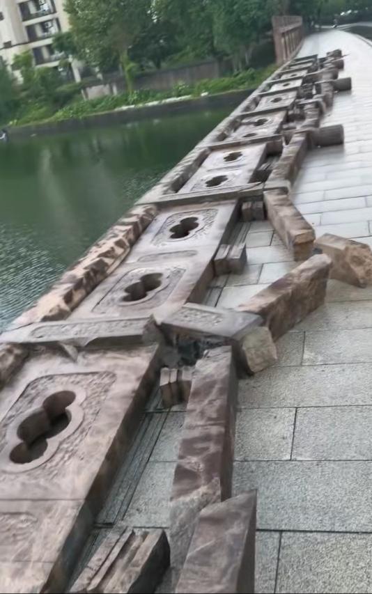 为何会有整排的石护栏倒塌?工作人员回应称:“具体原因需要建设方去做评估。有些路、桥分等级,负责维修的部门也不同,也不一定是我们这边修建的。”