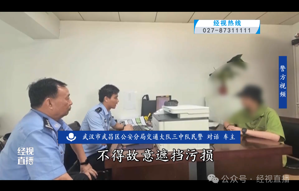 武汉市武昌区公安分局交通大队三中队民警 宋涛洋:“我现在跟你科普一下,根据《中华人民共和国道路交通安全法》第十一条规定,机动车号牌应当按规定悬挂并保持清晰、完整,不得故意遮挡、污损。”
